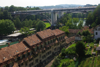 Kitą dieną Bernas. Šveicarijos sostinė. Karšta. Senamiestis iš 3 pusių apsuptas Arės upės kilpos. Miestą saugo UNESCO. Upėje karštį malšina daug žmonių. Berno herbas yra meška. Nes vokiškai “baer” yra lokys. Aptvare gyvena gyvos meškos, jas mėgsta turistai.