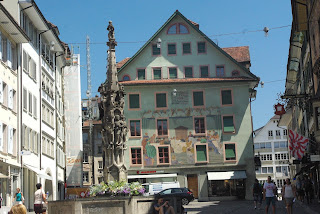 Tai Vyno turgaus, Daržovių, Grūdų. Čia miesto rotušė. Dešinėje toliau yra Šv. Leodegardo bažnyčia su 2 smailais aukštais bokštais. Ji matosi iš tolo plaukiant ežeru. Ji yra pagrindinė katalikų bažnyčia Liucernoje.