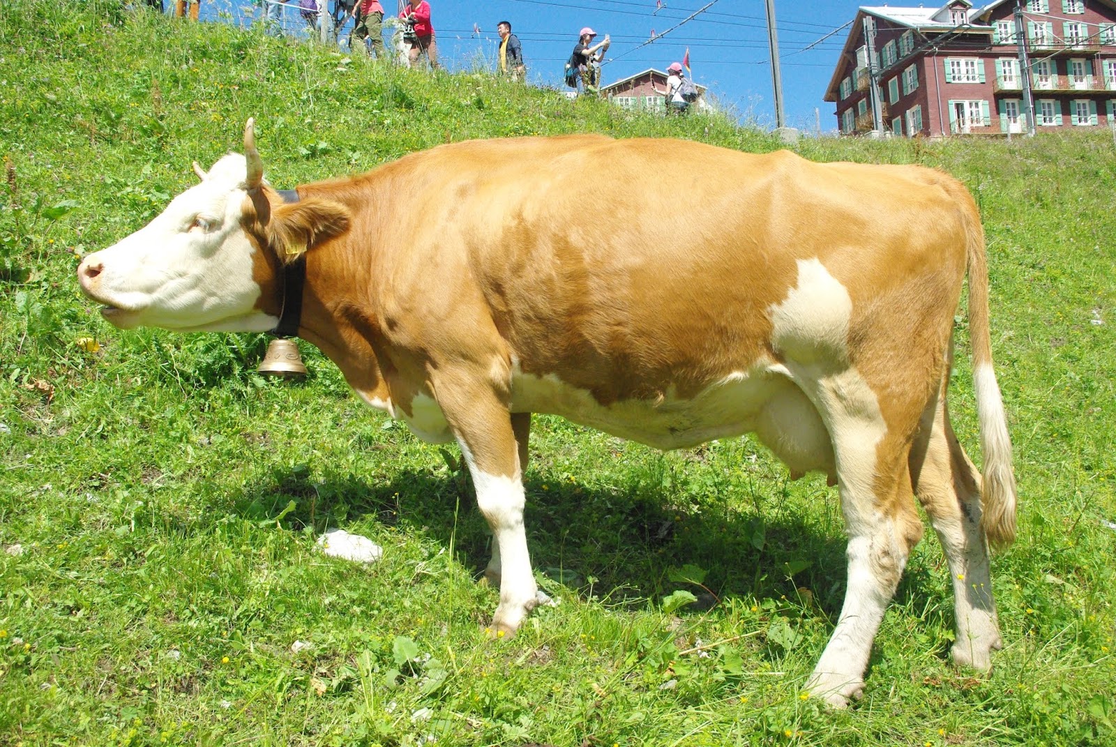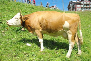 Melžimui karvės išsirikiuoja pagal hierarchiją- vyriausia priekyje, po to jaunesnės iki jauniausios. Virš jų iškilusi trijulė: Eiger, Monch ir Jungfrau. Trys viršūnės. Sėdame į kitą traukinį ir važiuojame į aukščiausią geležinkelio stotį Europoje- Jungfraujoch.