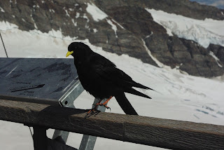 Vienoje pusėje Jungfrau viršūnė. Virš galvos plazda gražioji Šveicarijos vėliava. Panoraminis vaizdas aplink 360 laipsnių. Šalia ant turėklo pozuoja juodi varnai. Jie tikisi maisto iš turistų. Jungfraujoch reikia pasiekti, nes aprašyti neįmanoma.