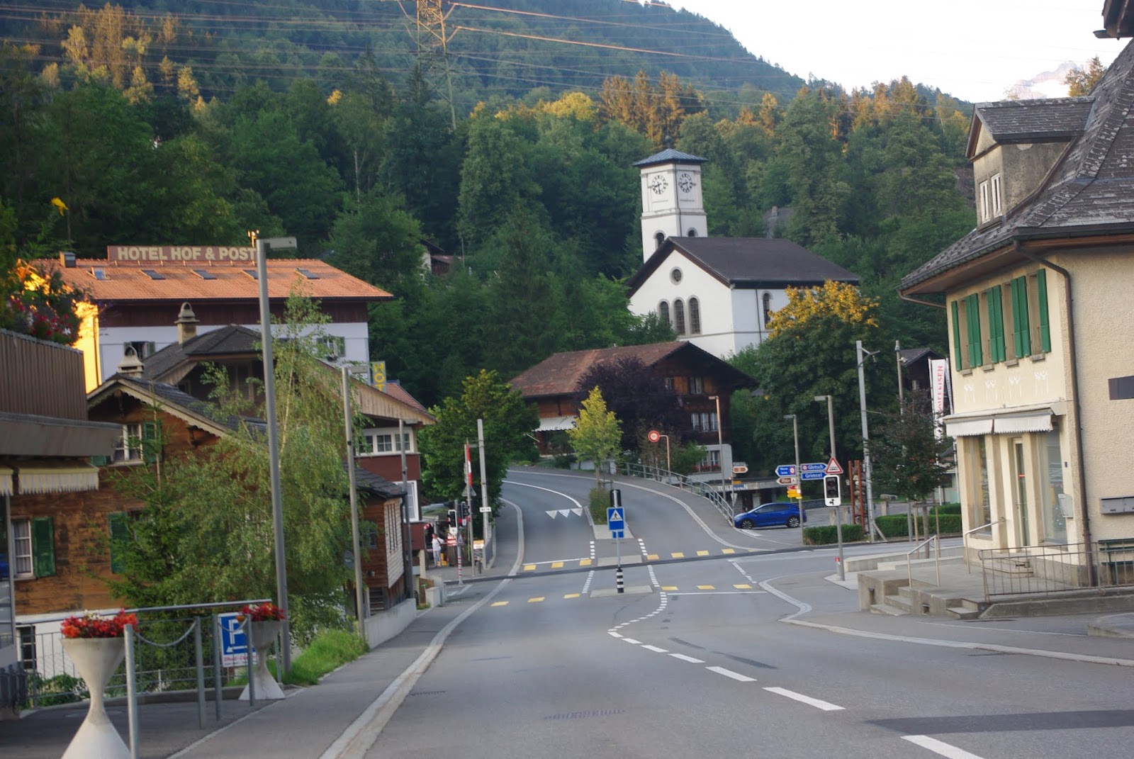 Upė prasigraužia per uolas ir teka slėniu, čia jaukiame miestelyje Innertkirchene nakvojau.
