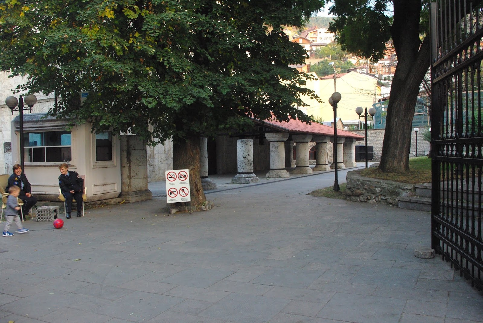 Netoli tilto dešiniame upės krante Sinano Pašos mečetė. Teko joje apsilankyti ir pafotografuoti. Mečetė yra Šadervano gatvėje. Čia miesto centras. Senas fontanas. Suvenyrų pardavėjai.