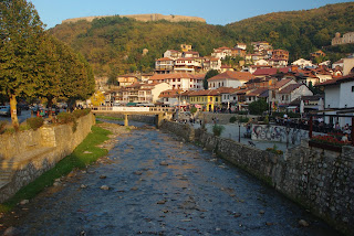 Per Prizreno centrą teka Bistricos upė. Nuo jos pakrančių matomi gražiausi vaizdai visomis kryptimis. Prie upės senukas pardavinėja keptus kaštainius. Nusipirkau.