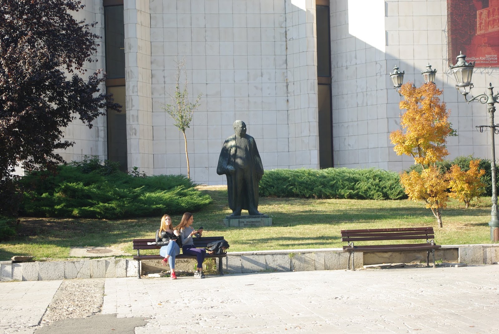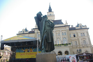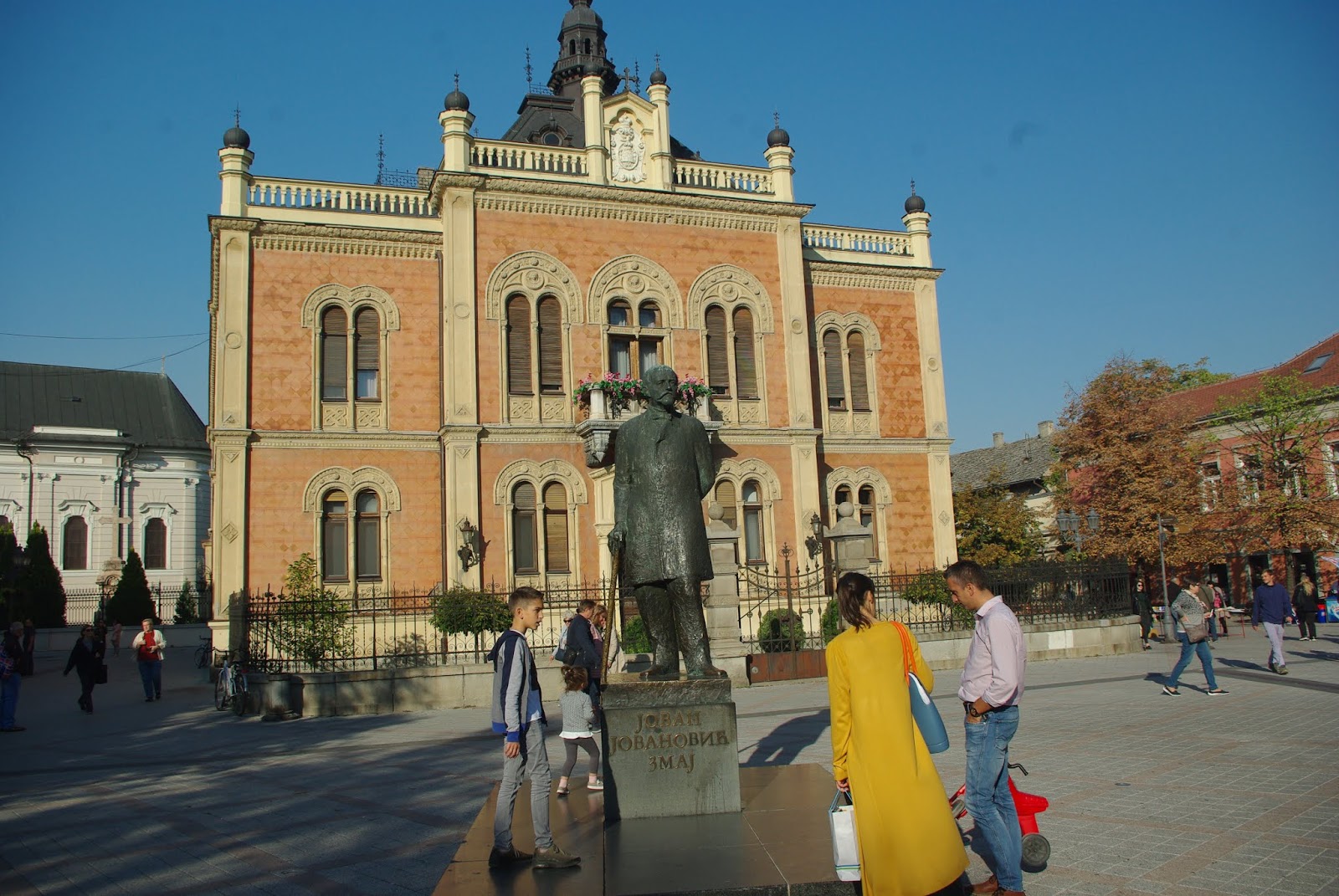 Priešais serbų poeto Zmaj Jovina paminklas. Šalia jo vardo gatvė. Stačiatikių cerkvė- soboras.