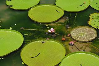Aplankėme Singapūro botanikos sodus. Tai didžiulė žalia teritorija. Joje vandens telkiniai, kalvelės, pievos, medžiai, tropinis miškas. Didelė nestandartinės formos teritorija. Mes net tarpusavyje pasimetėme čia. Vandenyje žydi lotosai. Tiesa jie išsiskleidžia tamsoje, geriausia stebėti švintant. Dieną žiedai užsidarę, bet vienas kitas būna praviras. Radome Victoria Regia vandens augalą, kurio lapai didžiausi pasaulyje ir išlaiko 7 metų vaiką virš vandens.