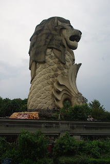 Liūtas ypatingas- merlionas. Liūto galva ir žuvies kūnas. Tai Singapūro simbolis.