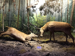 Čia yra stumbras vienas didžiausių ir sunkiausių. Du elniai susikibę ragais, jie abu čia yra. Vaikščiojant lydi paukščių ir kitų gyvūnų garsai. Tad jautiesi tikrame miške. Gyvūnų iškamšos tikros, natūraliai atrodo, aplinka kaip tikrame miške.