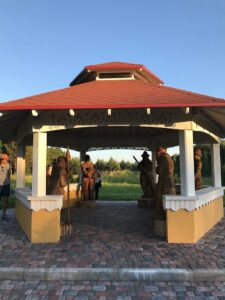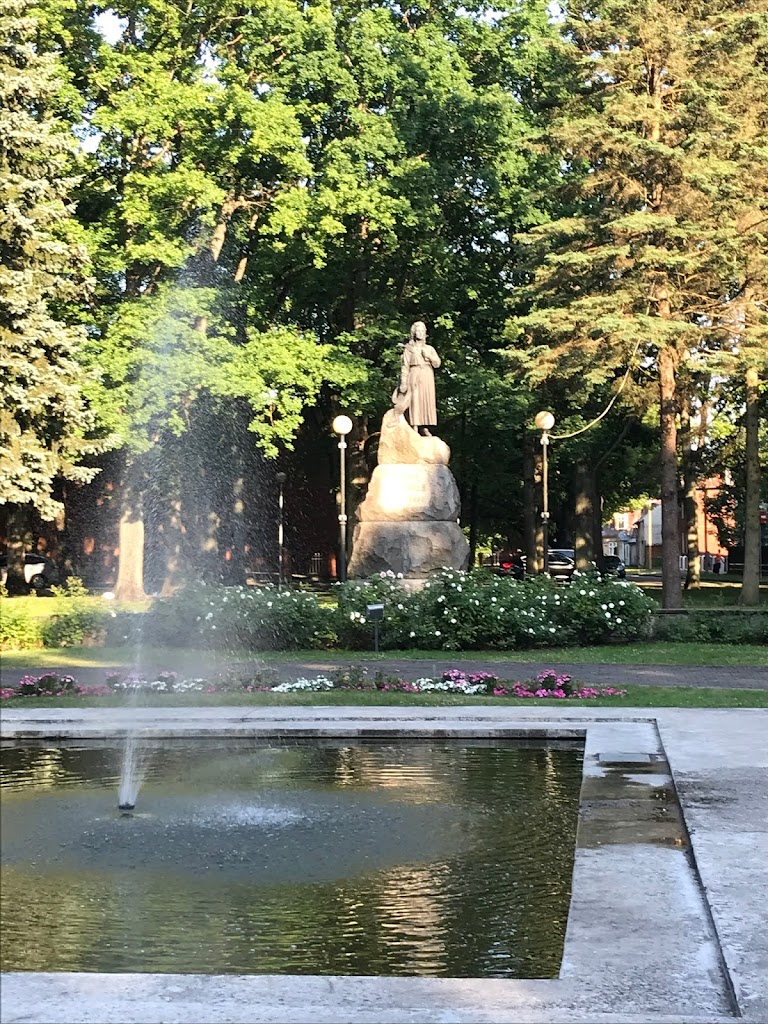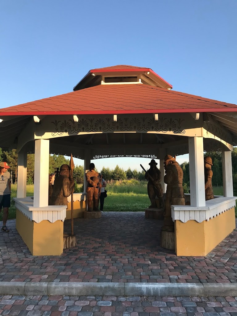 Čia yra daug suolų, pagamintų iš medžių kamienų. Yra pavėsinių. Čia sutikome keliaujančių lietuvių, pasidalinome įspūdžiais.