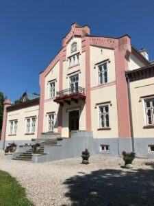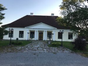 Yra pastatų grupė palei keliuką link vandens. Pakrantė prižėlusi. Yra SPA. Į dvarą neįleidžia įeiti.
