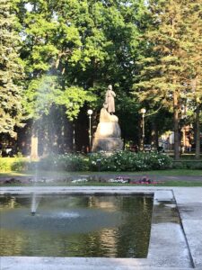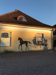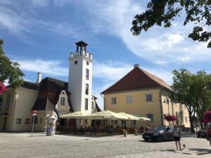 Viename jos gale universalinė parduotuvė, kitame- turizmo informacijos centras su 4 aukštų bokštu. Informacijos gauname, bet į medinį bokštą neleidžia.