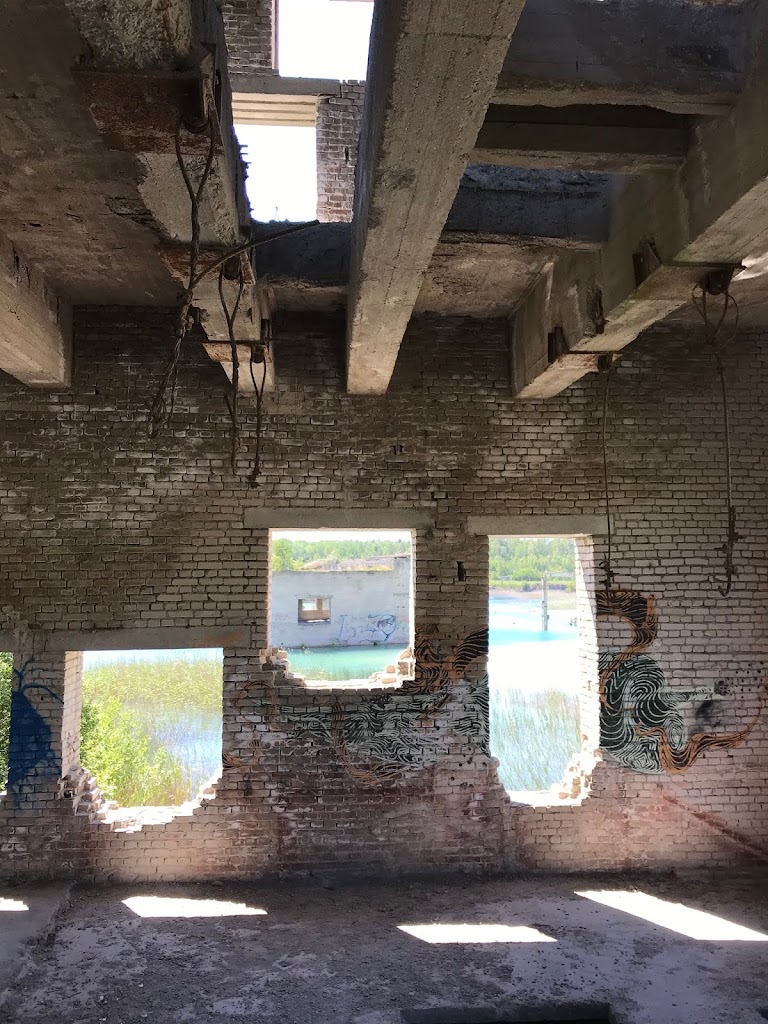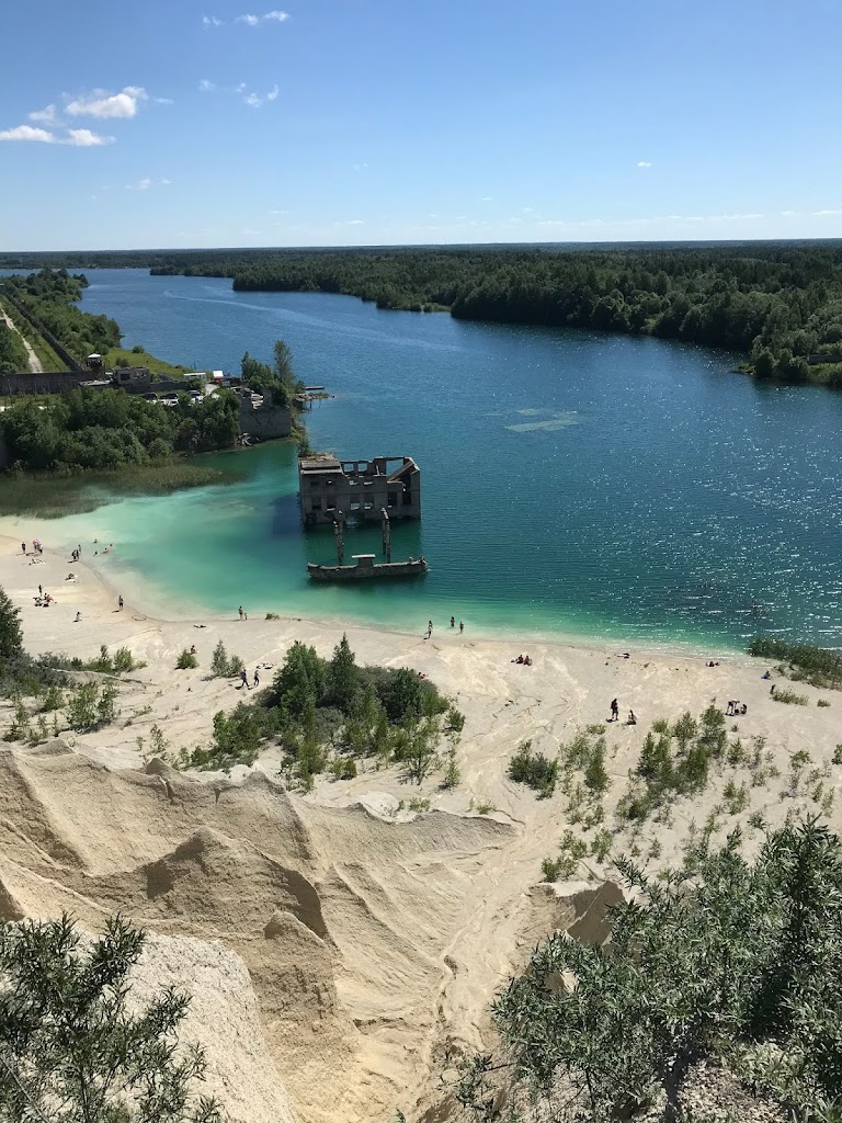 Nagais kabindamasis, pabaigoje į krūmus įsikibęs užropojau. Vaizdas atėmė žadą. Nuo viršaus matėsi visas buvęs kalėjimas ir ežeras.