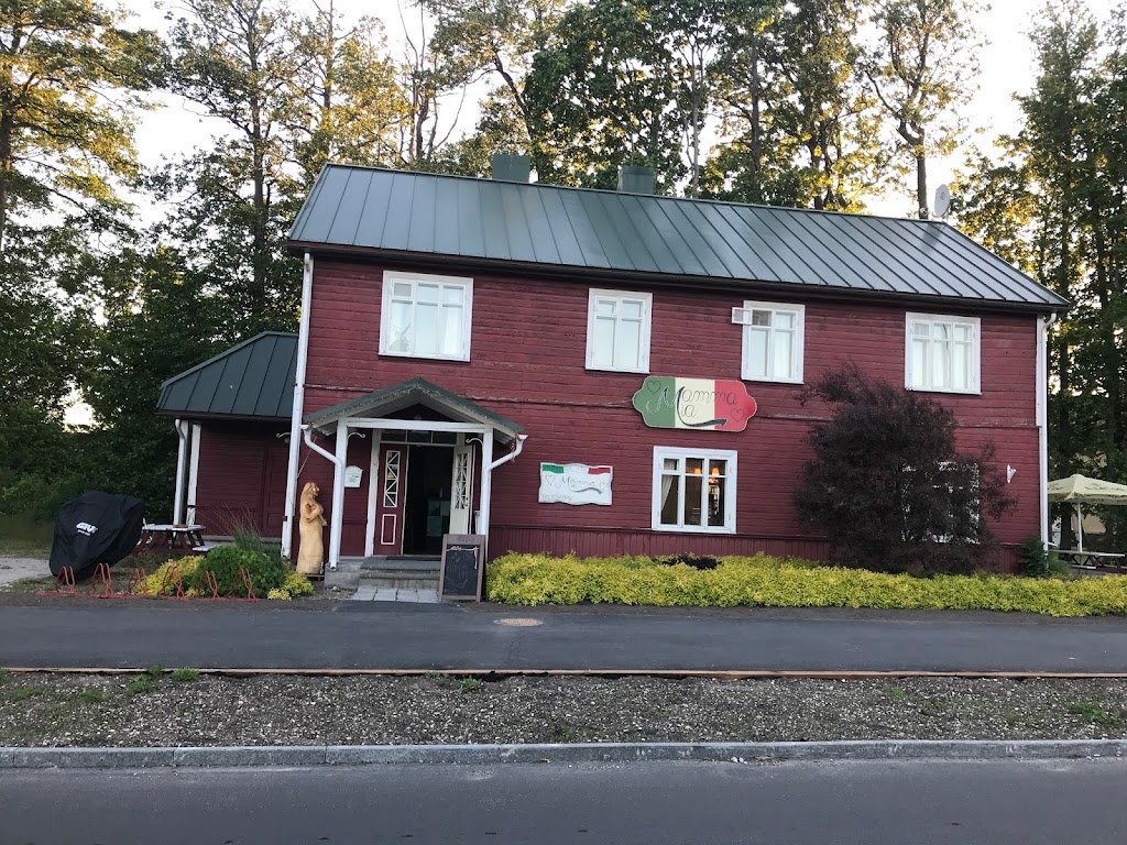Kiainoje skaniai pavalgome. Kiainoje gražus seniūnijos pastatas, akmeninis, su verandomis. Pakeliui į Hiumos pietus, yra nedidelių vėjo malūnų.