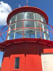Užlipame į viršų ir tikrai matome Sliterės aukštą skardį Latvijoje. Prie švyturio esančiame pastate muziejus. Švyturių istorija ir geografija.