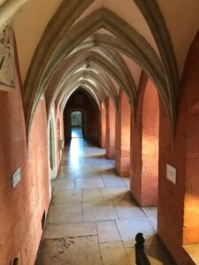 Čia yra kavinė. Vienuolyno apatinėje dalyje ypač jauku, prieblanda, skliautai, jaučiama viduramžių dvasia.