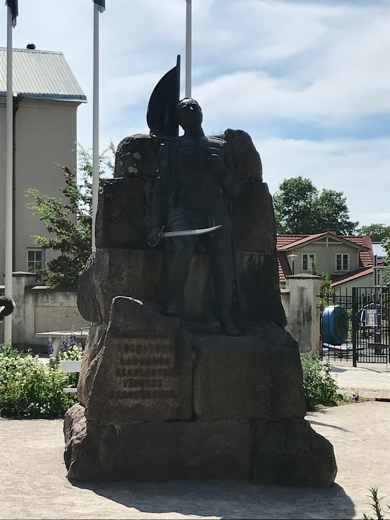 Paminklas saremiečiams žuvusiems išsivadavimo kare 1918-1920 metais. Valgome kavinėje priešais rotušę.