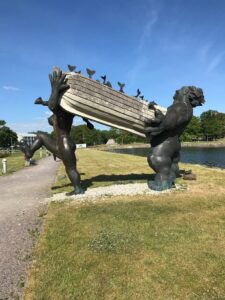Matome vykstančią kažkokią šventę prie vandens. Aplankome vietinį muziejų. Visi jie čia mokami, po kelis eurus. Stovi nuošaliai keli namai. Pakilus ant kalvelės, stovi Leigerio skulptūra.