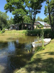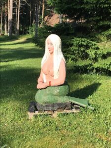 Stovykloje buvo sūpynės, daug vietinės reikšmės praeito amžiaus rankų darbo kūrinių. Jie labai įvairūs, kai kurie šaržuoti. Statomi nauji nameliai. Čia jautėmės saugiai, daiktų palikdavome prieangyje, valgėme išorėje. Niekas nedingo. Tai būdinga visai mūsų kelionei vakarinėje Estijoje.