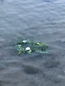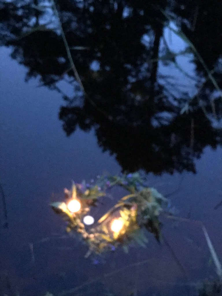 Vakare šventėme Jonines. Moterys pynė vainikus iš lauko gėlių. Su jais prie degančios ugnies fotosesija. Vainikus plukdėme į jūrą su degančiomis žvakutėmis.