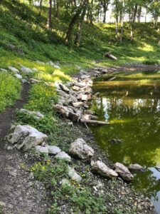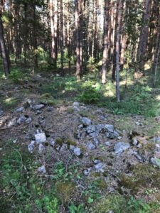 Pavaikščiojom takais miške ir radom iš akmenų sukrautus apskritimus tikrai seniai. Kiti apskritimai lyg žemės pylimai, iškasti grioviai ir įdubos.