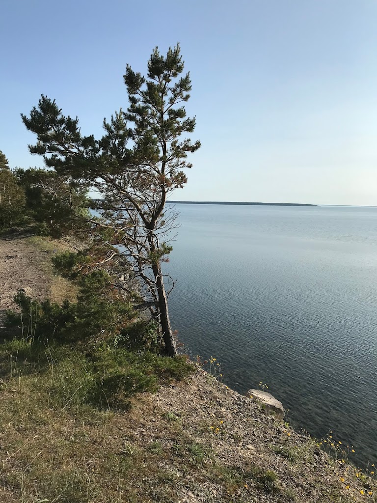 Mums ypač patinka raižytos jūros pakrantės. Įlankos ir pusiasaliai. Salos. Dėl seklių įlankų jūros vanduo sušyla birželį iki 24 laipsnių. Ten kur gilu ir galima plaukti- 22 laipsniai. Nuvažiavę šiauriau radom karštą orą ir šiltą jūrą ir gėlą vandenį.