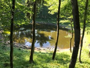 Atskirame pastate buvo dušas su karštu vandeniu ir sauna. Buvo vienas minusas- uodai. Bet purškiklio buvome atsivežę ir naudojome. Prie stovyklos ežeriukų ateidavo ožių kompanija. Miške gyvena hailendai, tačiau neatėjo į stovyklą, o mes toli jų neieškojom.