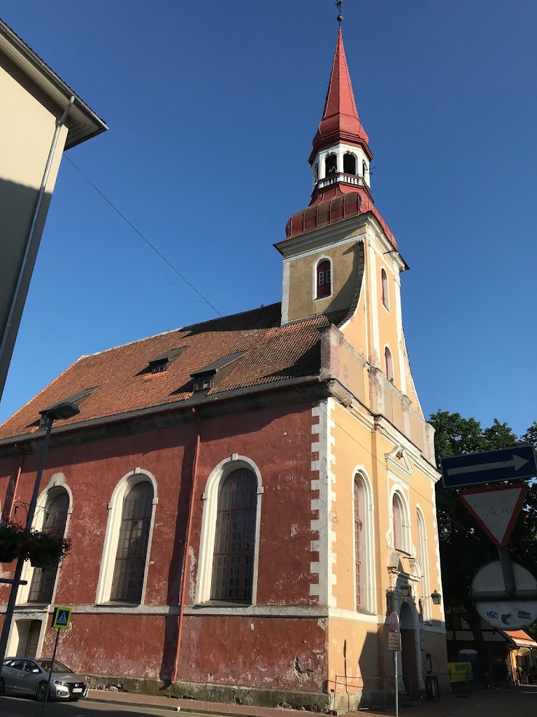 Gotikinė bažnyčia išpuošta dolomitinių skulptūrų grupėmis. Tai unikali Estijos bažnyčia.
