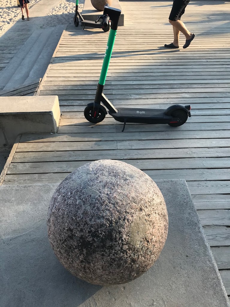 Daug senų medinių raižytų namų. Pilna poilsiautojų. Visokios transporto priemonės, kurios Palangoje. Net išbandėme paspirtuką. Ir nenusiverčiau.