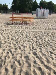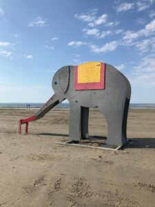 Paplūdimys Pernu tvarkingas, persirengimo kabinų daug, suolų daug. Smėlis. Jūra šilta ir sekli. Apie 22 laipsnius vanduo. Prie jūros stovi dramblys.