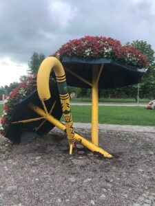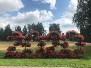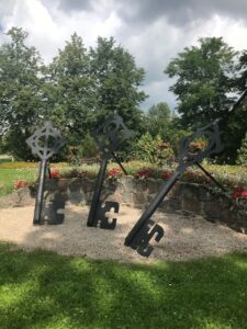 Pakeliui raktų skveras. Stovi 3 dideli gražūs raktai. Kitur iš gėlių “pagaminti” metai- 2020. Gražu ir originalu.