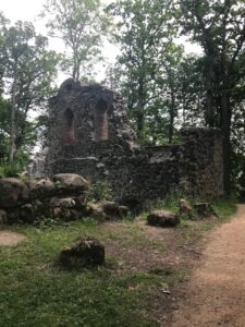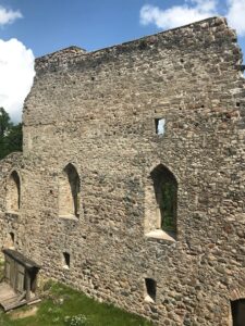 Tačiau 1601 metais gaisras ją pavertė griuvėsiais ir ji nebuvo atstatyta. Likusi vienos sienos dalis. Aplink žaluma lyg subtropikuose viską paslepia. Kelios langų angos pilies sienoje.