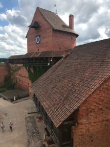 Puslankiu stovi daugybė medinių spintų. Pastatai senoviški, skirtingų stilių ir paskirčių. Einame ieškoti pilies.