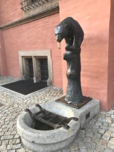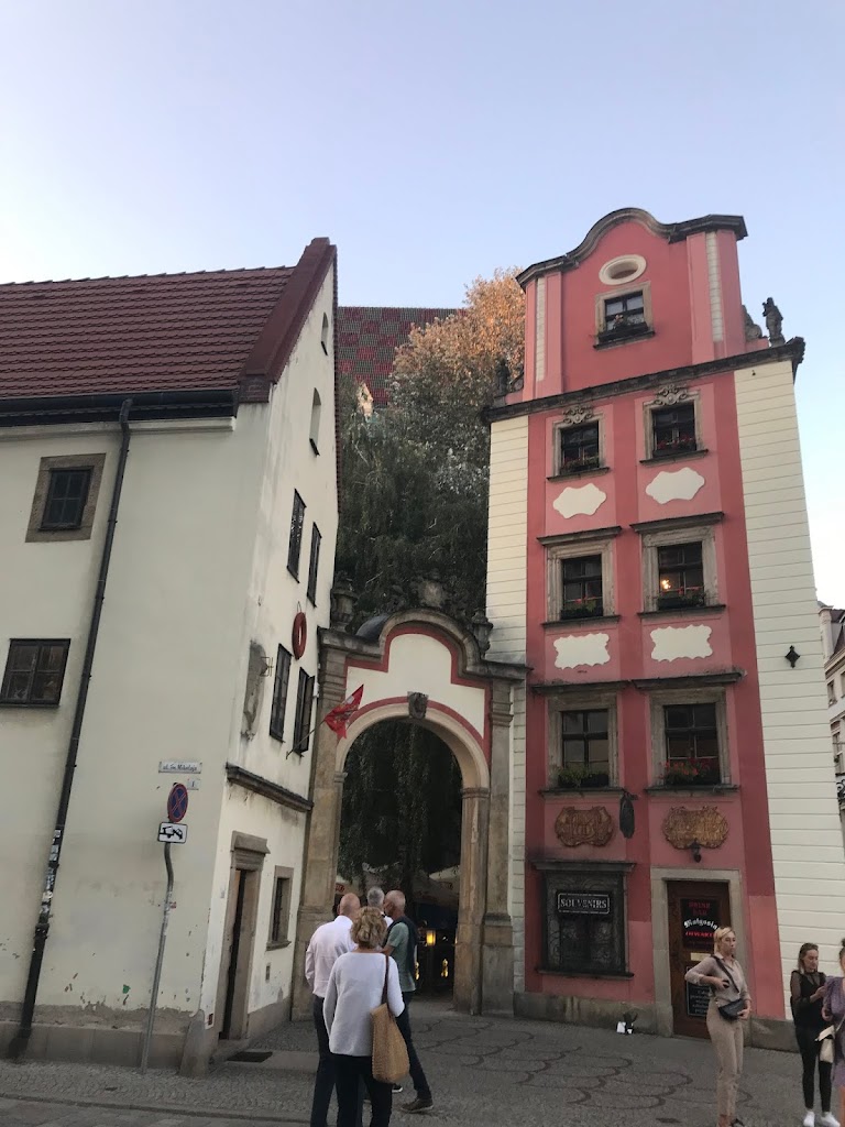 Čia Pirklių namas, Geležies ir Puodžių praėjimai. Viename aikštės kampe yra gotikinė rotušė. Ji labai daili, tiesiog traukia akį. Jos neina aprašyti, reikia atvažiuoti ir pamatyti. Prieš ją laukia turistų karietos.