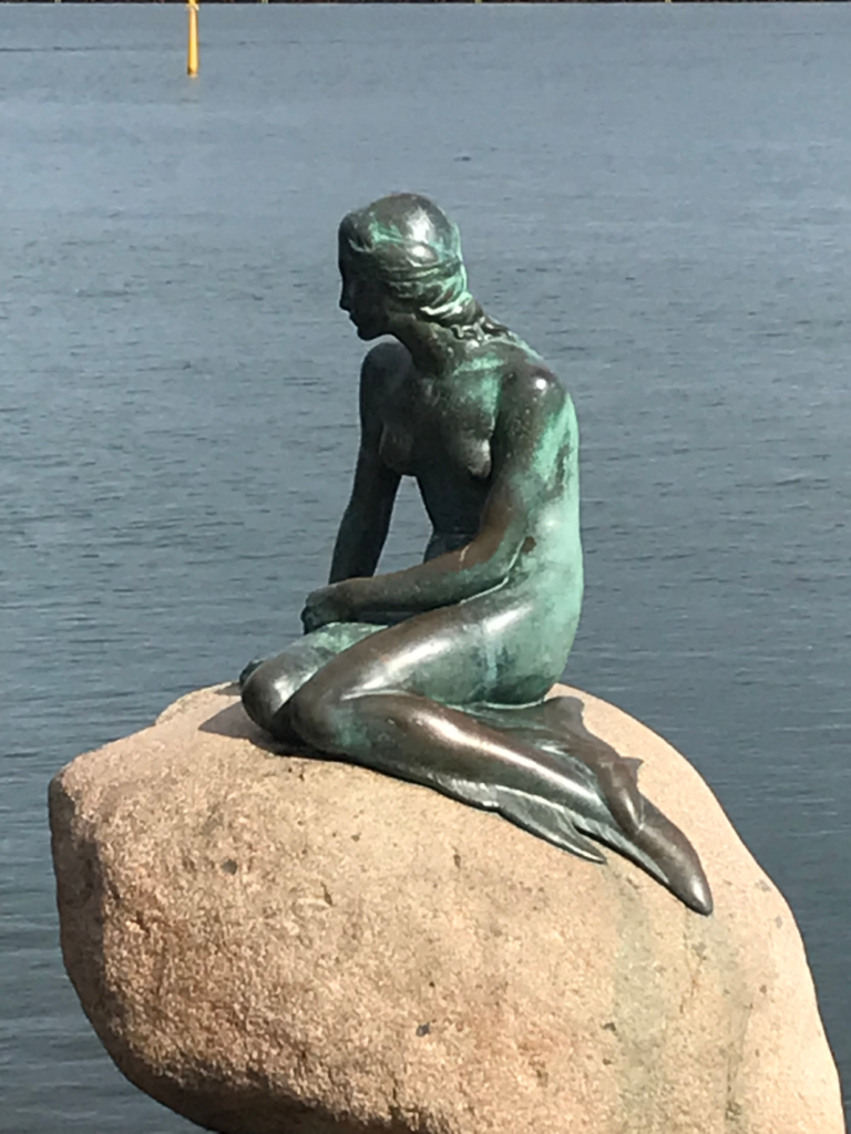 Kas nebuvęs Danijoje, žino Undinėlę Kopenhagoje. Mano viena iš užduočių sau irgi tokia. Eiti tolokai, atokiau centro. Einu per citadelę. Ji pastatyta 1616 metais Kristijono IV. Tai karinė teritorija, vaikščioti galima. Pasigrožiu daugybe ilgų pastatų, aplink pylimas su žole. Už pylimo vanduo. Praeiti citadelę išilgai nepavyko dėl remonto. Teko pylimu grįžti ir eiti kita griovio su vandeniu puse. Undinėlę apspitę turistai iš Azijos. Pasigrožiu atsisėdęs ant akmens. Nufotografuoju. Ji yra ant akmens keli metrai nuo kranto. Nedidelė. Bet didelis simbolis. Undinėlę sukūrė skulptorius E.Eriksenas pagal aludario ir mecenato K. Jakobseno užsakymą. H.K. Andersenas sukūrė pasaką apie undinėlę. Dabar dauguma ją myli, lanko, grožisi. Yra kas nekenčia, yra aplieta dažais ir galva nukirsta. Bet abejingų nėra. Ji laikoma garsiausia Pasaulio skulptūra. Amerikiečiai gal pasiginčytų dėl Laisvės skulptūros. Bet Undinėlė bent jau mielesnė.
