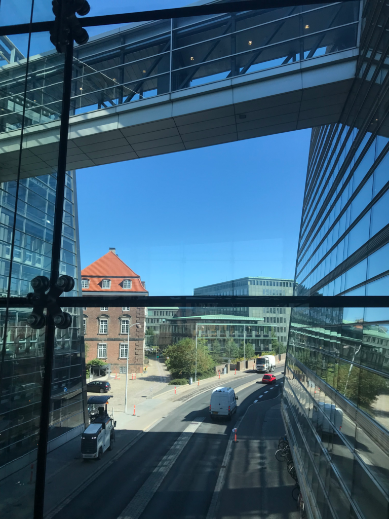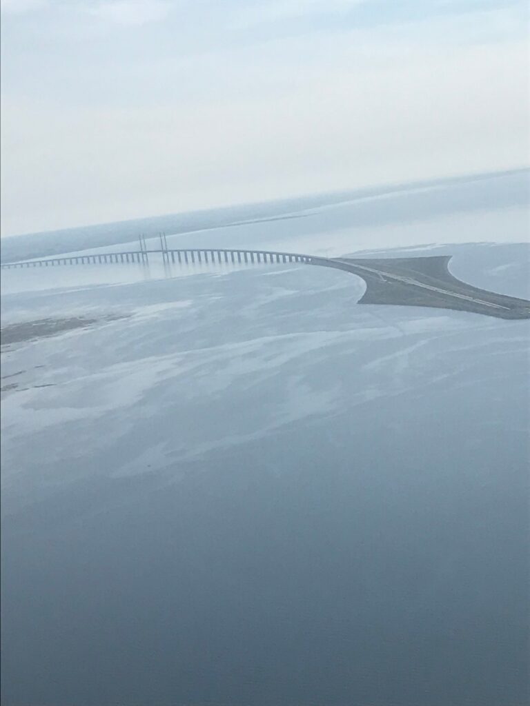Atvykau autobusu. Pervažiavom Oresundo tiltą bei tunelį ir jau Kopenhagoje. Čia nereikia jokių kaukių. Laisvė visiška. Žmonės draugiški. Jeigu pasiklysti, pasisiūlo padėti. Man iš rankų iškrito bilietas, net nepastebėjau, kažkas praeinantis padavė. Oresundo tiltas baigtas statyti 1999 metais. Apie 16 kilometrų ilgio. Dalis kelio eina tuneliu po vandeniu. Susisiekimas tarp Kopenhagos Danijoje ir Malmės Švedijoje žymiai palengvėjo ir pagreitėjo.