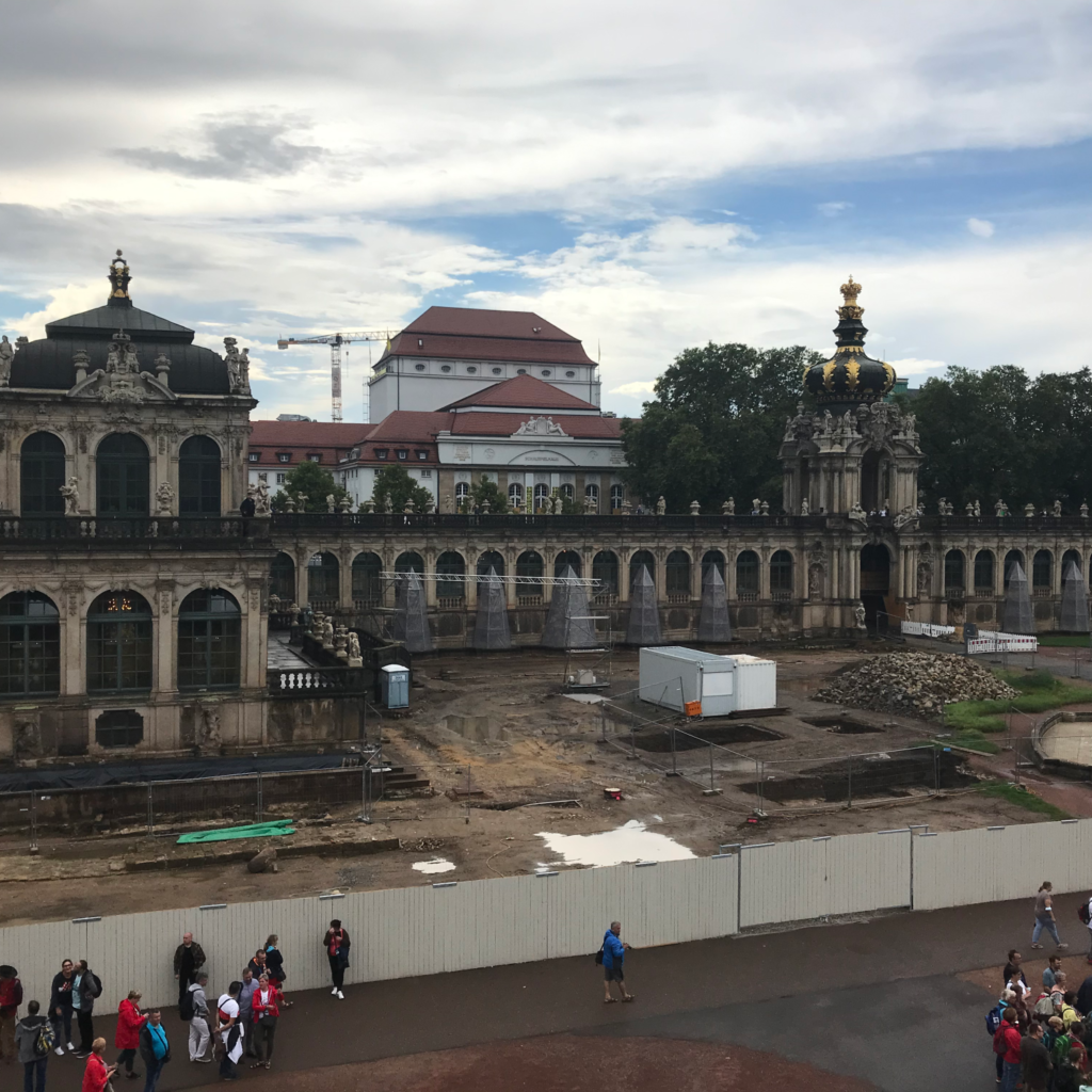 Cvingeris. Garsiausias baroko šedevras Drezdene. D. Piopielmanas XVIII amžiaus pradžioje pastatė šią oranžeriją. Dabar Cvingeris remontuojamas, ne visur galima buvo nueiti ir fotografuoti.