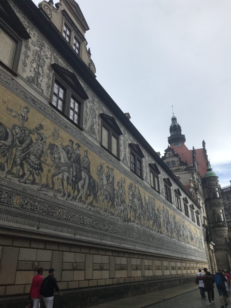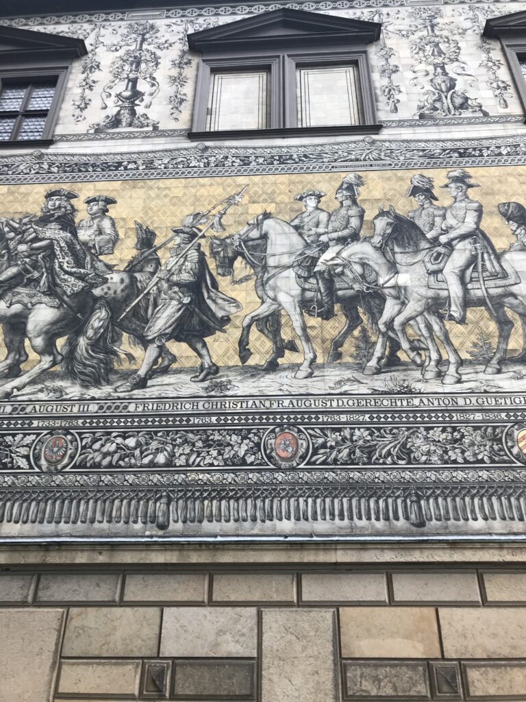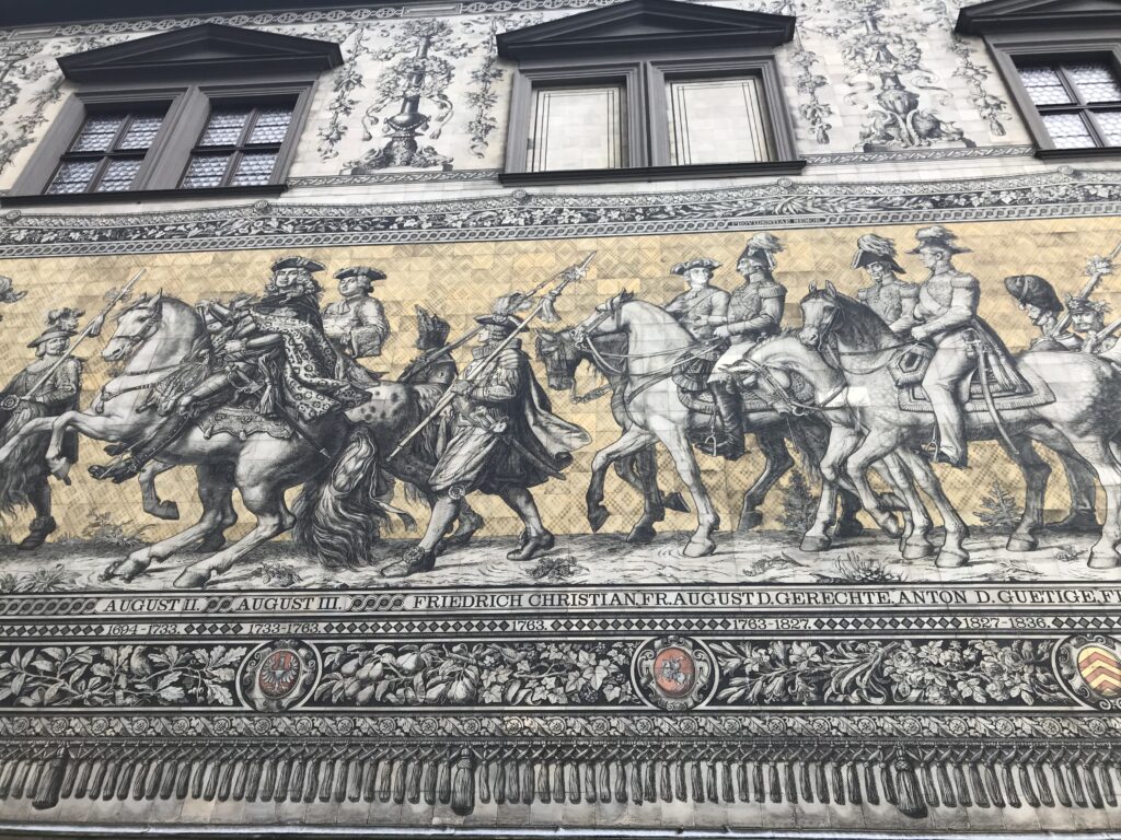 Karalių eisena. 102 metrų ilgio pano ant sienos Augusto gatvėje ilgiausias iš porceliano plytelių esantis kūrinys pasaulyje. 25.000 plytelių. Čia eina ir Augustas II ir Augustas III.
