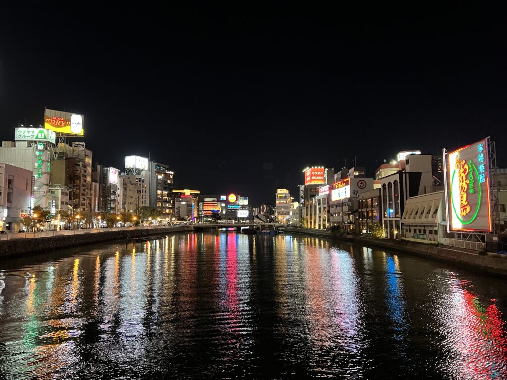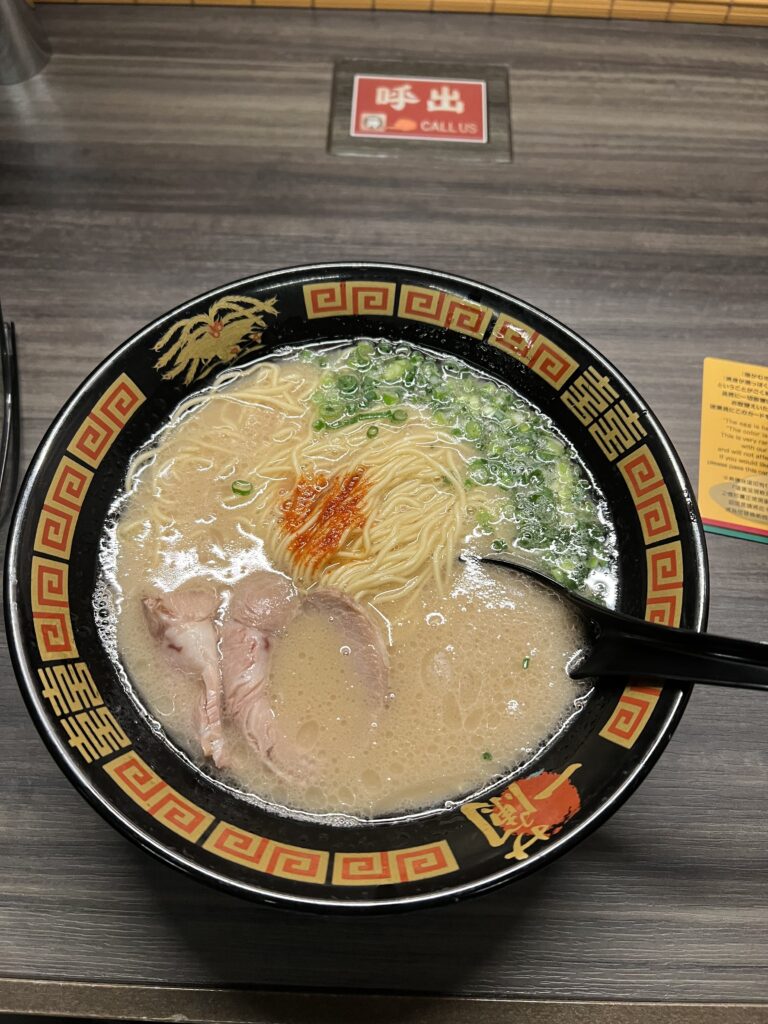 Fukuoka- miestas pietinėje Kiušiu saloje. Šilta netgi naktį. Pavalgėme ramen prestižiniame maitinimo tinkle. Nustebino operatyvumas, reikėjo ant popieriaus pažymėti kokius 10 maisto požymių. Patiekė, uždarė langelį. Kaip prie klausyklos.