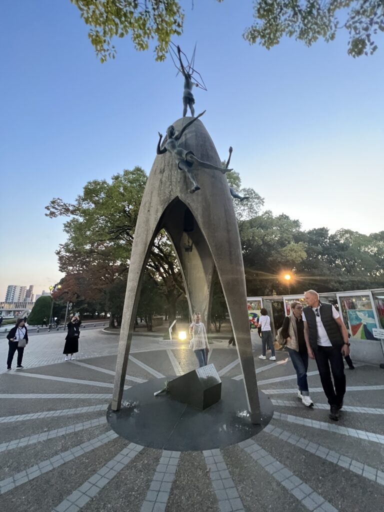Netolima kelionė į Hirošimą. Čia didelis miestas, plačios gatvės. 1945.08.06.08.15 sustojęs laikrodis. Taikos memorialo muziejus. Daug nuotraukų, aprašymų, schemų, išlikusių sudegusių ir išsilydžiusių daiktų. Vienareikšmiškai sukrečia. Įvyko tragedija. Daug pamatyta. Suvenyrų čia pirkti nesinori. Žuvo apie 140.000 žmonių.