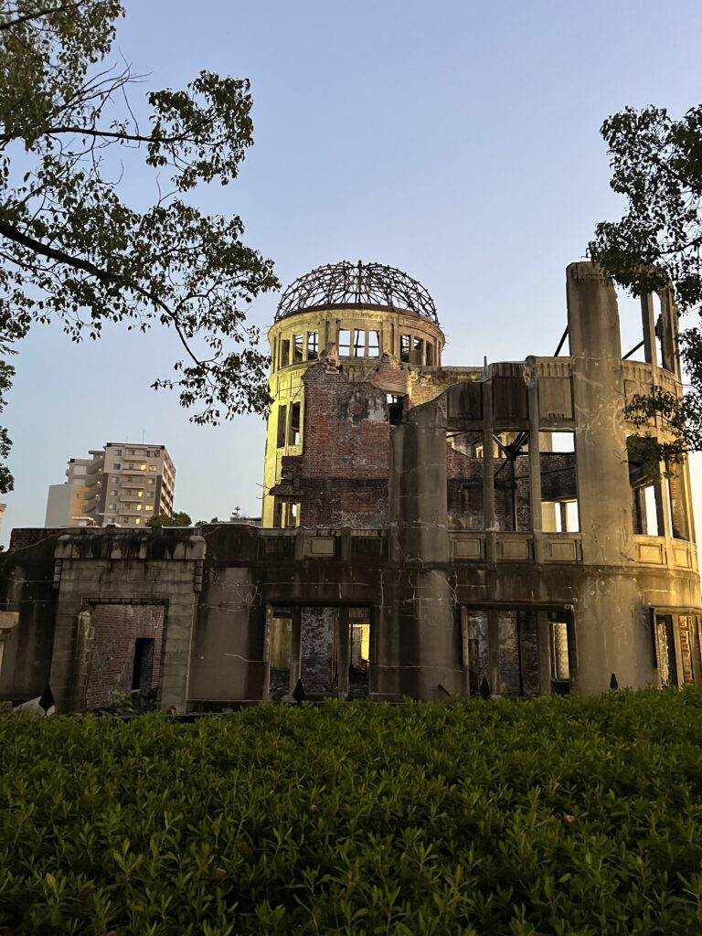 Ikoninis pastatas, išlikęs per bombardavimą. Namas su kupolu be stogo. Jis atpažįstamas iš interneto, žiniasklaidos. Apėjau reliktą. Populiarus foto objektas. Aptverta tvorele. Sunku suprasti, ką namas išgyveno per atominę ataką ir po to. Leidžiantis saulei už pastato matau nuostabią vakaro žarą. Šalia teka upė. Pastatų, išgyvenusių katastrofą, yra daugiau. Bet jie perstatyti, renovuoti, adaptuoti. Todėl vienintelis nerekonstruotas yra ikona.