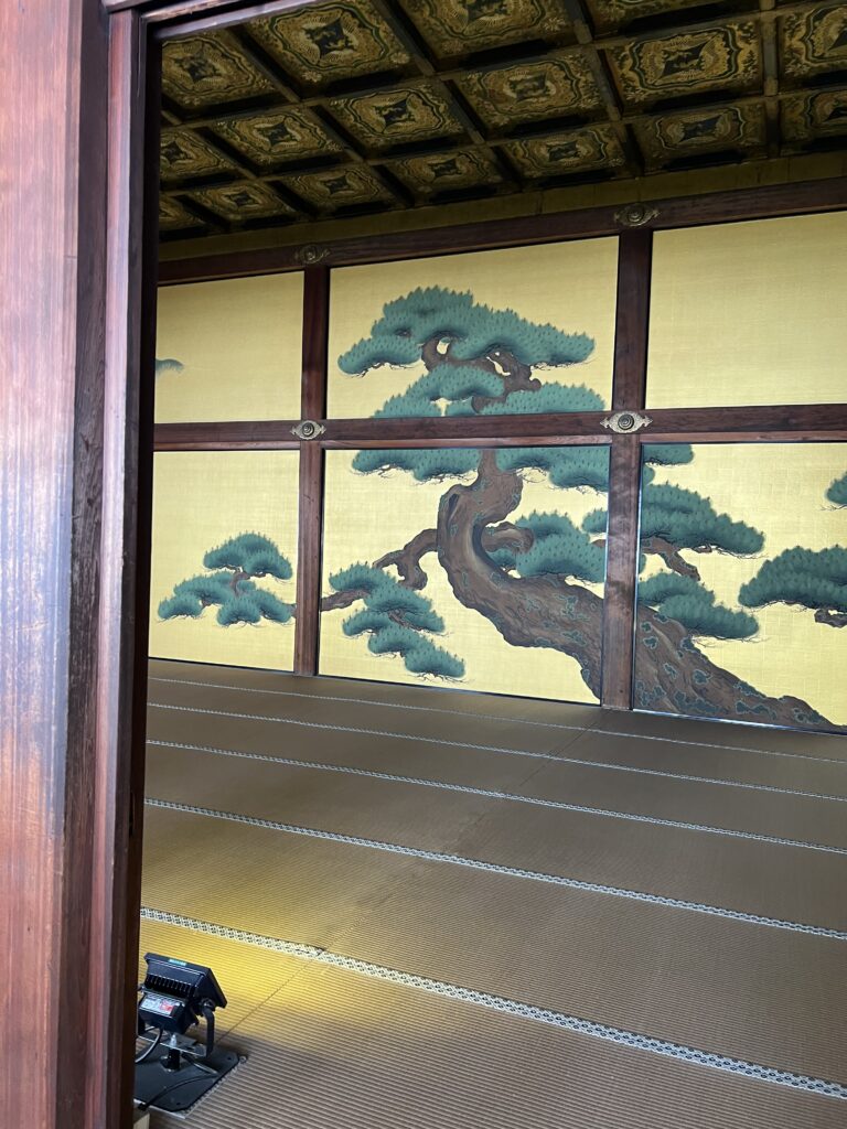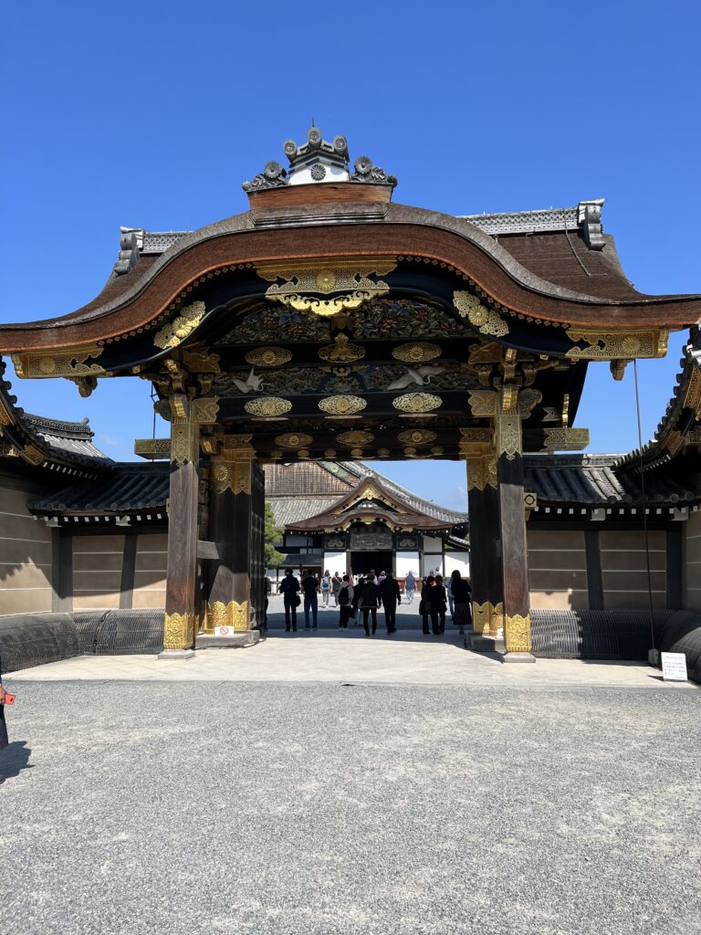 Kiotas buvo Japonijos imperijos sostine nuo 794 iki 1868 metų. Tais laikais šalį valdė šiogunai. Iš visos valstybės atstovai susirinkdavo Kiote. Tie vykimai į sostinę buvo pastovūs, reguliarūs. Nijo pilis visa tai matė. Mes joje buvome. Bet neleido fotografuoti. Ilgas koridorius ir daug salių dešinėje. Jose atvykę šiogunai laukė priėmimo. Toliau jie pasitarime. Žmonės sėdi ant grindų. Išorėje yra didelis japoniškas sodas, tvenkinys. Teritorija didelė, daug žalumos.