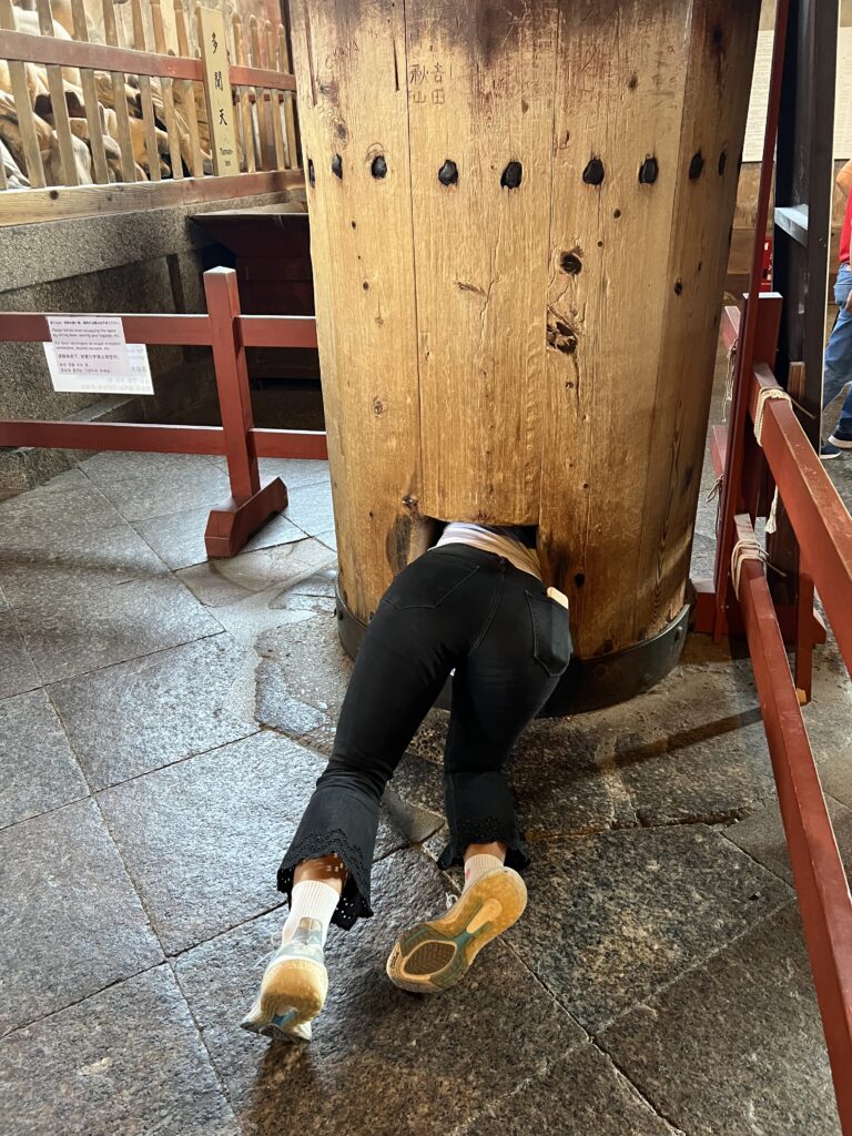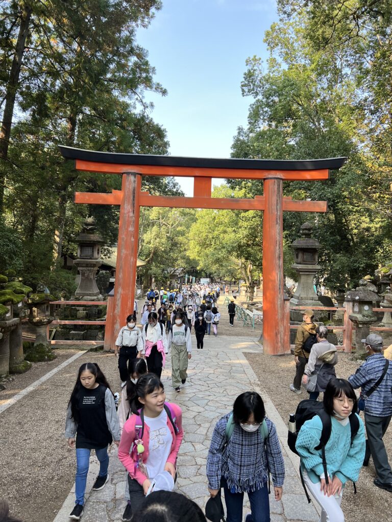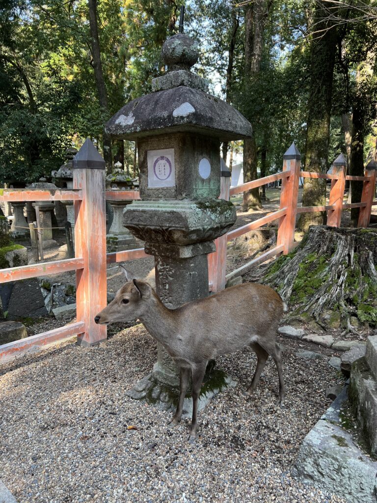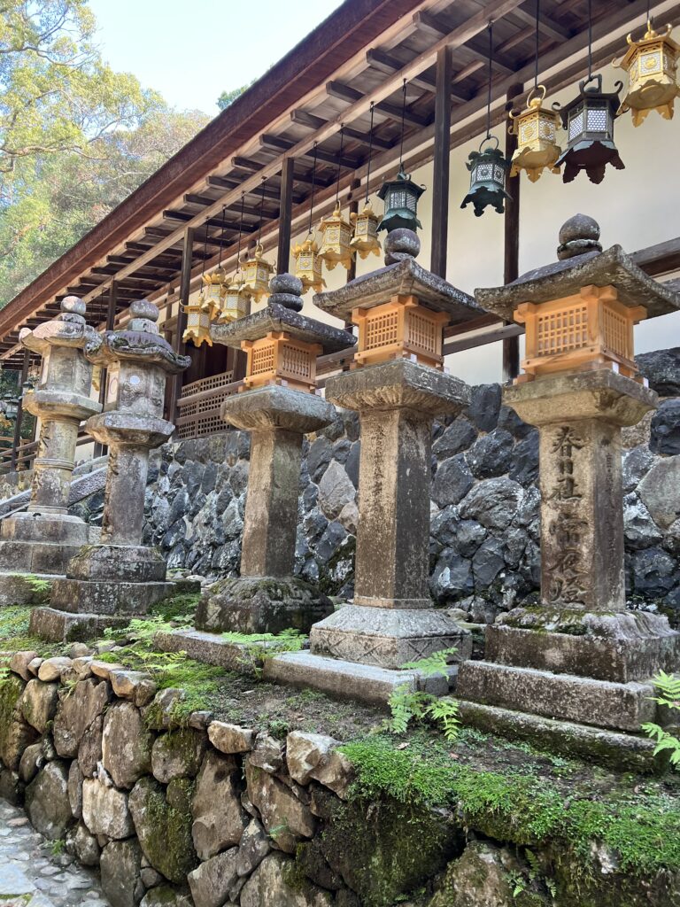 Kasugos šventykla irgi Naroje. Ją juosia 786 akmeniniai žibintai. Čia pirkome palinkėjimus. Gerus pasilikome sau. Blogus neutralizavome vietoje. Čia mačiau vestuves. Įdomi patirtis. Bet labiausiai Naroje patiko elniai.