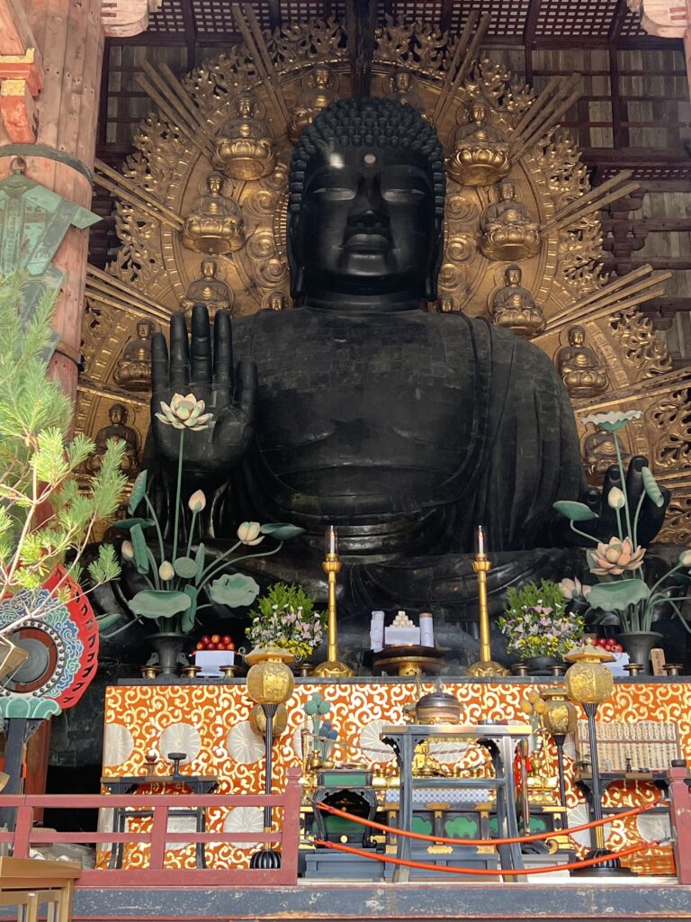 Todaiji šventykloje mačiau didžiausią Budą. Į šventyklą galima įeiti, apeiti ratu ir vėl išeiti. Dydis nustebino. Jos aukštis 15 metrų. Šventyklos vartai mediniai labai dideli ir labai seni. Tiesiog dėl to nusilenki. Japonai nusilenkia kaip mes nukeliam kepures prie bažnyčios.