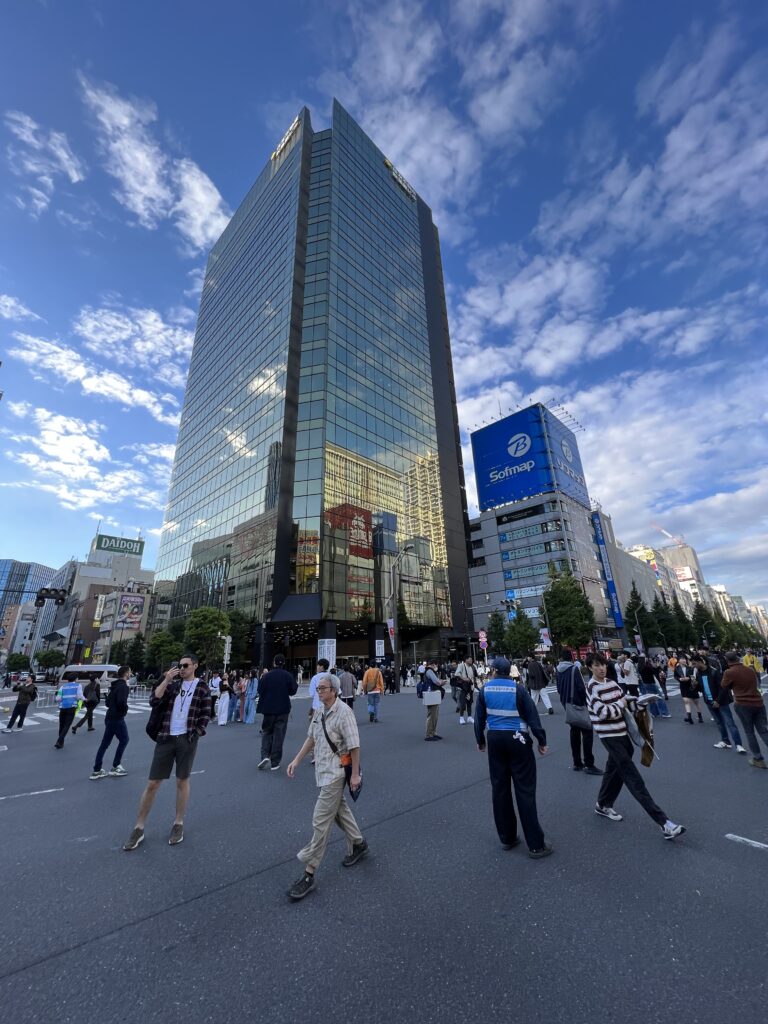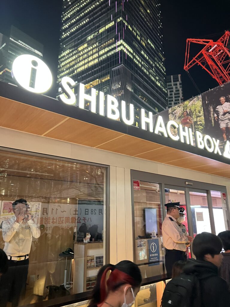 Sekantis objektas yra Šibujos rajonas. Jį garsina intensyviausia pasaulyje Šibujos perėja. Užsidegus žaliam šviesoforo signalui, tūkstančiai žmonių eina visomis kryptimis. Tai įspūdinga kai eini. Tai jauti visomis kūno ląstelėmis. Policininkai garsiu šaižiu švilpesiu praneša apie raudoną signalą. Aš asmeniškai labiau norėjau pamatyti šuns Hačiko paminklą. Šuniukas laukia šeimininko. Bet dėl helovyno šunelis buvo užtvertas nuo žmonių akių. Deja… Šis šuo garsus tuo, kad net 9 metus laukė savo šeimininko, grįžtančio iš darbo kai pastarasis buvo miręs.
