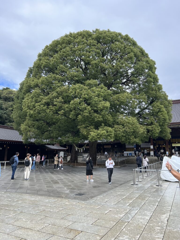 Meiji šventykla. 122-as Japonijos imperatorius Meiji buvo sudievintas. Jam skirta šventykla. Aplink didžiulis parkas. Sunku suprasti kaip megapolio viduryje tiek žalumos išsaugota.
