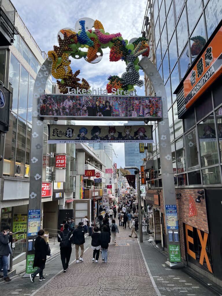 Iš Meiji parko einame pėsčiomis į Harajuku rajoną. Čia paauglių zona. Net aš nusiperku marškinėlius su katinais. Paaugliams čia parduotuvių daug, jie laukia eilėje, kol jos atsidarys.
