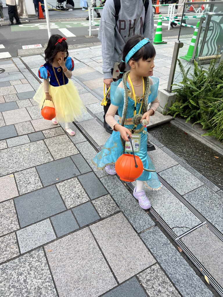 Iš Harajuku rajono į Omotesando kalvas. Tai prestižinis rajonas sostinėje. Gatvė- alėja eina nuo kalvos žemyn. Joje sutinkame daug persirengusių žmonių, šeimų su vaikais nes helovynas. Jie labai skirtingi ir įvairūs. Bet visi geranoriški. Leidžiasi fotografuojami, tuo džiaugiasi. Įeiname į prekybcentrį su milžiniška vidine erdve. Architektai čia įgyvendino savo svajones.