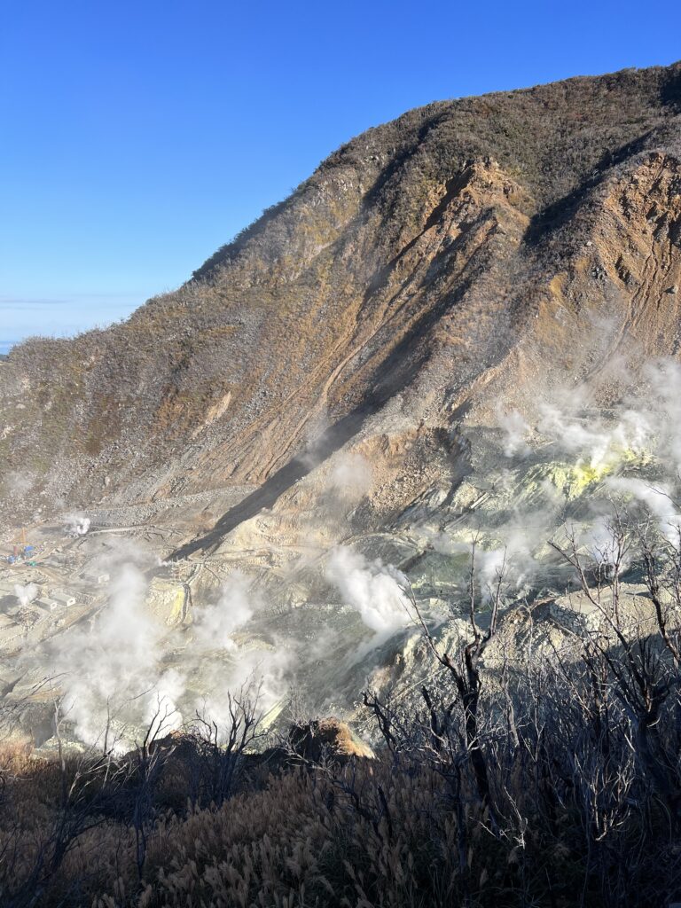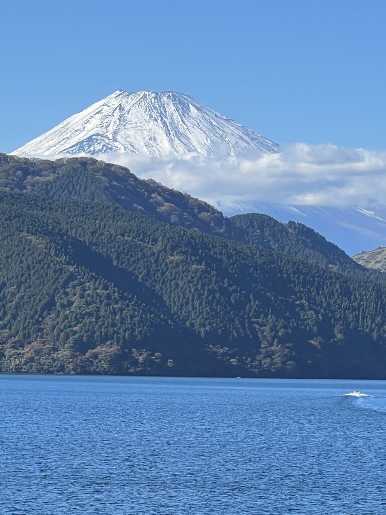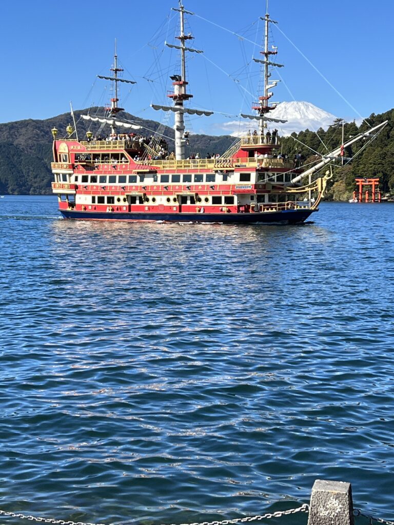 Sostinė apžiūrėta, nors reikėtų kelių savaičių tam. Varom prie švento japonams kalno- Fuji, jo aukštis 3776 metrai. Apačioje yra tradiciniai mediniai vartai ant ežero kranto. Fotografuojamės jų ir ežero fone. Tai tradicinis turistų kadras. Hakonės Nacionalinis parkas kalno papėdėje. Plaukiame piratų laivu per Ašio ežerą ir matome Fuji viršūnę. Atplaukus iš karto į lyno kelią ir kylame aukštai aukštai. Viršuje sieringi garai, aplink verda kunkuliuoja. Nusiperku dar suvenyrą. Po to perkame juodu kiaušinius ir skaniai suvalgome. Jie išvirti sieros garuose.