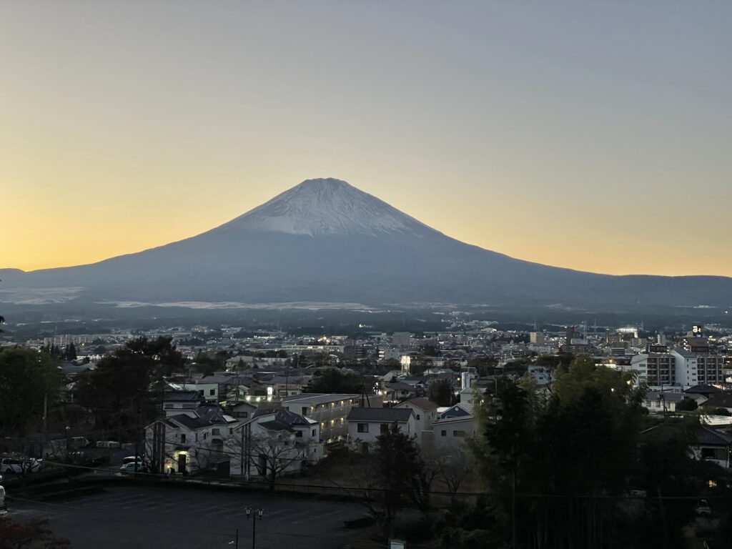 Kitą dieną bandome kilti į Fuji kalną. Ties ketvirta stotimi visus sustabdo, nes aukščiau pasnigo. Žiūrim, ką turim. Per debesis nieko nematome. matom miškus ir pievas. Nebe vakar. Pakeliui leidžiantis išnyra Fuji kalnas kokiai minutei ar dviem. Ir vėl dingsta debesyse. Vakar pamatėm ir užtenka.