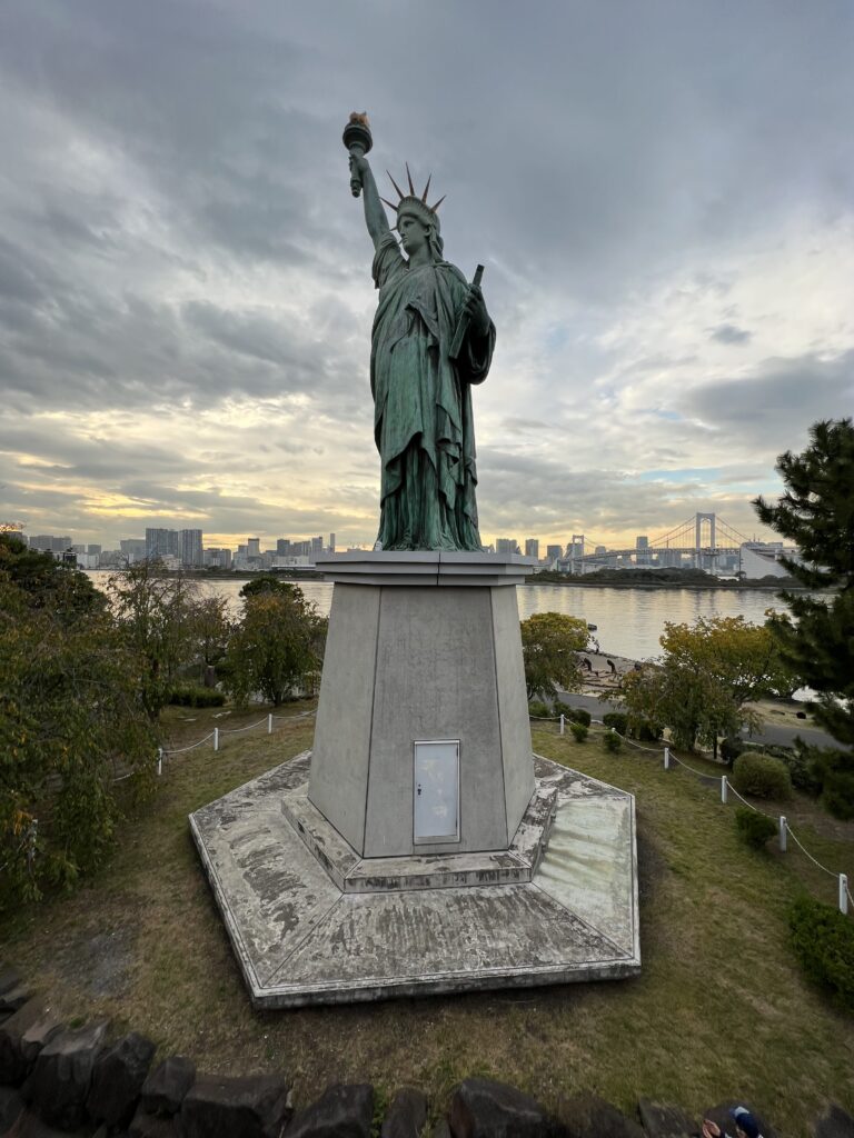Kelionė Japonijoje baiginėjasi. Grįžtame į sostinę. Paskutinis japoniškas vakaras Odaiboje. Tai dirbtinė sala. Super moderni. Tiltas į salą toks kaip Niu Jorke. Saloje stovi Laisvės statulos kopija. Fotografuojamės. Japonijos televizijos ultramodernus pastatas su kabančiu rutuliu. Milžiniškas prekybos centras. Jame daugybė parduotuvių, kavinių. Nusiperku knygą apie Japoniją, pavalgome, paskutinis japoniškas alus. Prie parduotuvės stovi vienaragis Gundamas. Labai didelis. Tokio niekur nemačiau, o čia milžiniškas. Prie jo fotografuojamasi, susitinkama.