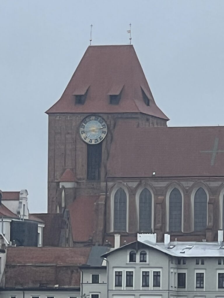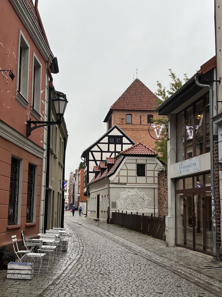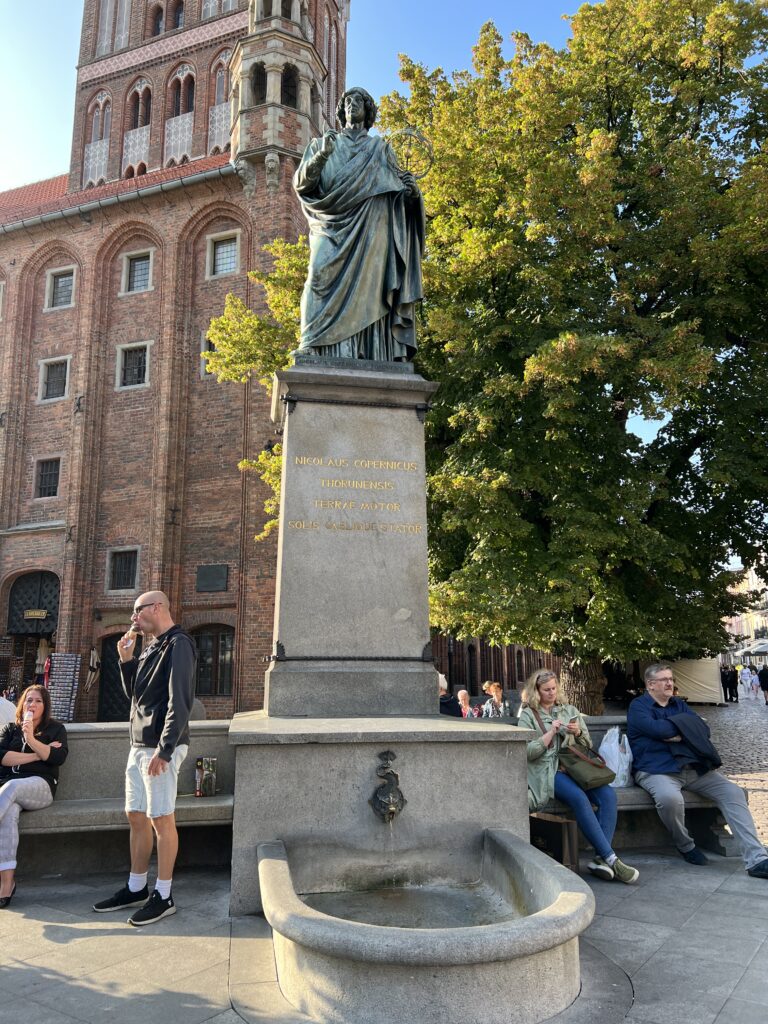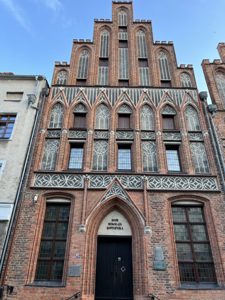 Greta eina M. Koperniko gatvė. Joje greta 2 Koperniko namai, labai gražūs. Jo tėvas buvo turtingas. Viename namų gimė M. Kopernikas. Jis gimė 1473.02.19, užaugo iki 18 metų. Išvyko studijuoti ir daugiau čia negrįžo. Viename name yra jo muziejus per keturis namo aukštus. Aplankėme jį visą ir nenusivylėme. Buvo įdomu, naudinga, interaktyvu. Lauke tuo metu lijo.